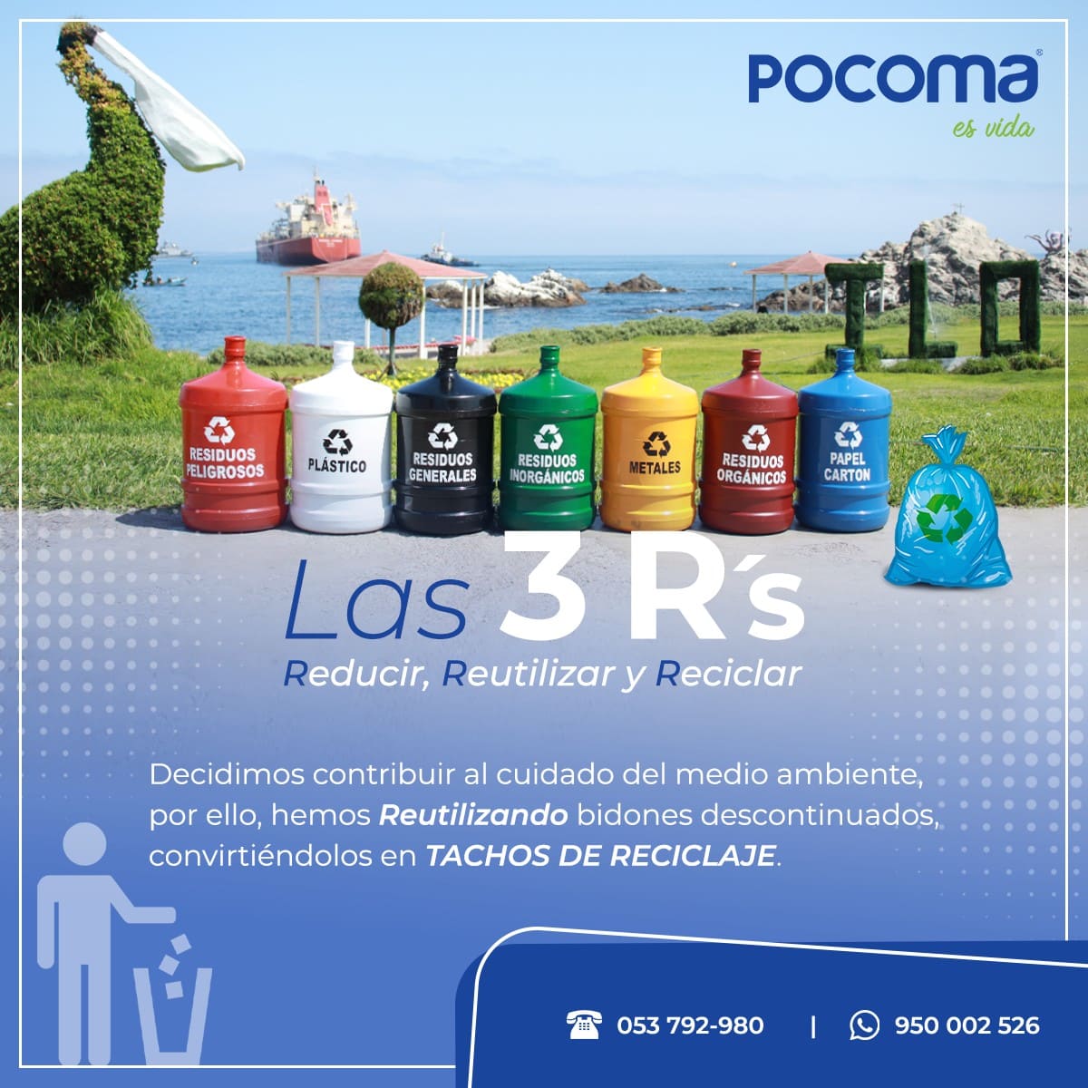Reciclamos nuestros bidones en desuso, convirtiéndolos en Tachos reciclables, maseteros, baldes, embudos, etc.